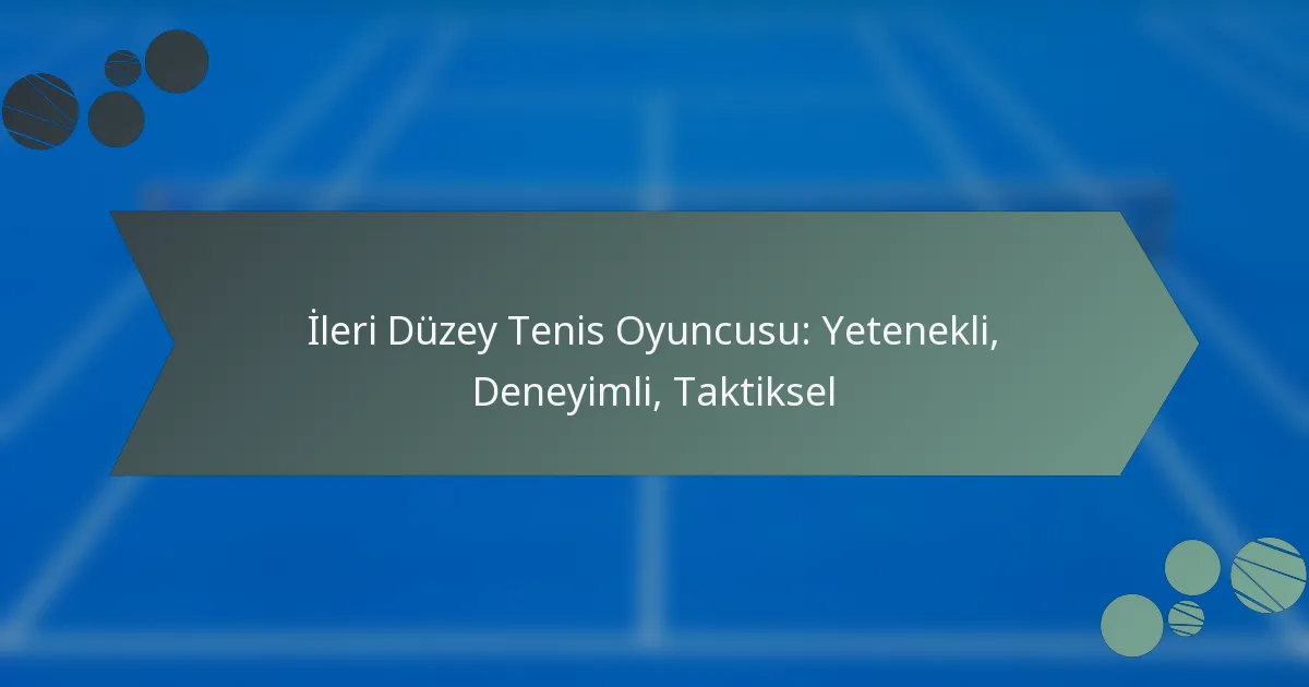 İleri düzey bir tenis oyuncusu, yüksek yeterlilik, geniş deneyim ve kortta taktiksel zekası ile ayırt edilir. Teknik becerileri fiziksel kondisyon ve zihinsel dayanıklılık ile birleştirerek, elit seviyelerde etkili bir şekilde rekabet etmelerini sağlar. Bu oyuncular, özverili pratik ve stratejik oyun ile yeteneklerini sürekli olarak geliştirerek rakiplerini alt etme ve çeşitli maç senaryolarına uyum sağlama yeteneği kazanırlar.